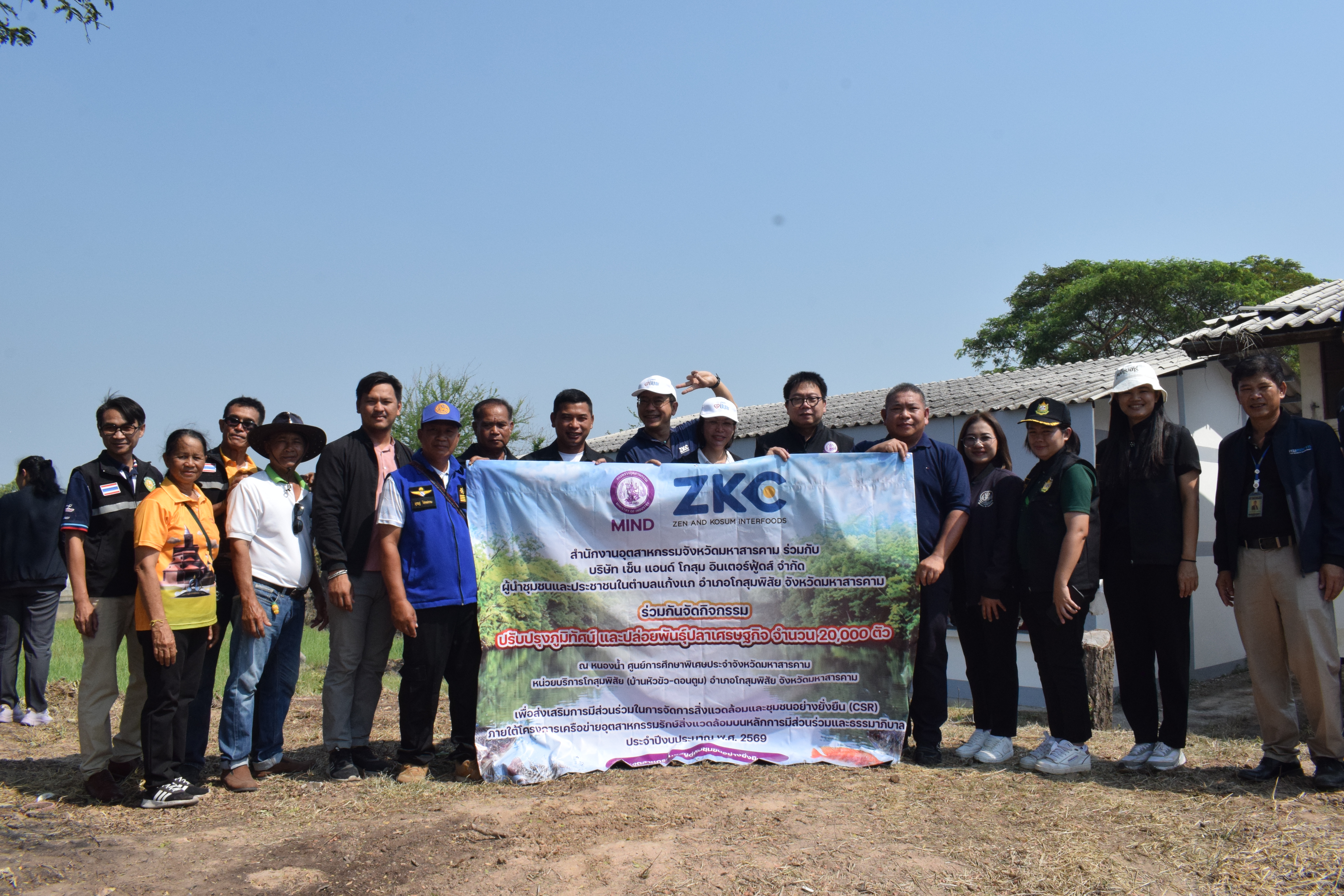 วันที่ 27 มีนาคม 2569 นายศิวะ โพธิตาปนะ อุตสาหกรรมจังหวัดมหาสารคาม พร้อมเจ้าหน้าที่ ร่วมกับ นายกองค์การบริหารส่วนตำบลแก้งแก ผู้บริหารบริษัท เซ็น แอนด์โกสุม อินเตอร์ฟู้ดส์ จำกัด และขุมขนโดยรอบโรงงาน ร่วมจัดกิจกรรมส่งเสริมการมีส่วนร่วมในการจัดการสิ่งแวดล้อมและชุมชนอย่างยั่งยืน (CSR) ด้วยการปรับปรุงภูมิทัศน์และปล่อยพันธุ์สัตว์น้ำเศรษฐกิจ จำนวน 20,000 ตัว ลงในแหล่งน้ำสาธารณะของศูนย์การศึกษาพิเศษประจำจังหวัด มหาสารคาม (หน่วยบริการโกสุมพิสัย) เพื่อส่งเสริมให้สถานประกอบการและภาคประชาชนมีส่วนร่วมในการจัดการ สิ่งแวดล้อมร่วมกันอย่างยั่งยืน สร้างความสัมพันธ์อันดีและภาพลักษณ์ที่ดีต่อภาคอุตสาหกรรมในพื้นที่ สร้างแหล่งอาหาร และรักษาระบบนิเวศในท้องถิ่นและตอบสนองต่อนโยบายของกระทรวงอุตสาหกรรม โดยกิจกรรมยังได้มอบทุนการศึกษา และอุปกรณ์กีฬาให้แก่ศูนย์การศึกษาพิเศษประจำจังหวัดมหาสารคาม เพื่อใช้ประโยขน์ในการเรียนการสอนต่อไป